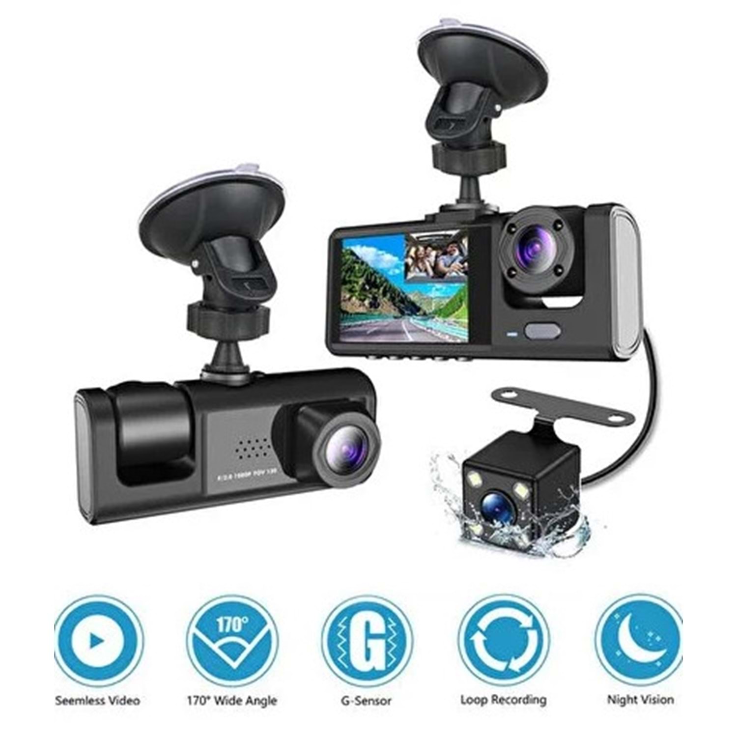 Carboon T717 Araç İçi Kamera 1080P+720P Full Hd Ön,arka ve Iç Kayıt 3 Kamera Gece Görüşlü